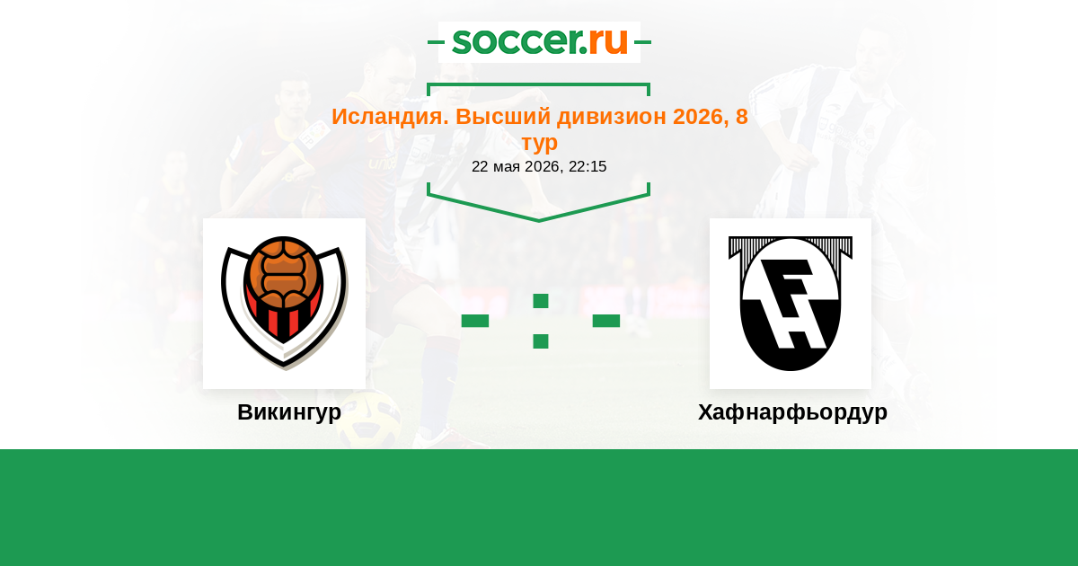 Исландия. Высший дивизион 18.04.2022 Викингур Логотип футбольный клуб Викингур (Рейкьявик) 2:1 Логотип футбольный клуб Хафнарфьордур Хафнарфьордур