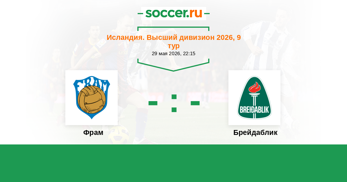Исландия. Высший дивизион 23.06.2025 Брейдаблик Логотип футбольный клуб Брейдаблик (Коупавогюр) 1:1 Логотип футбольный клуб Фрам (Рейкьявик) Фрам