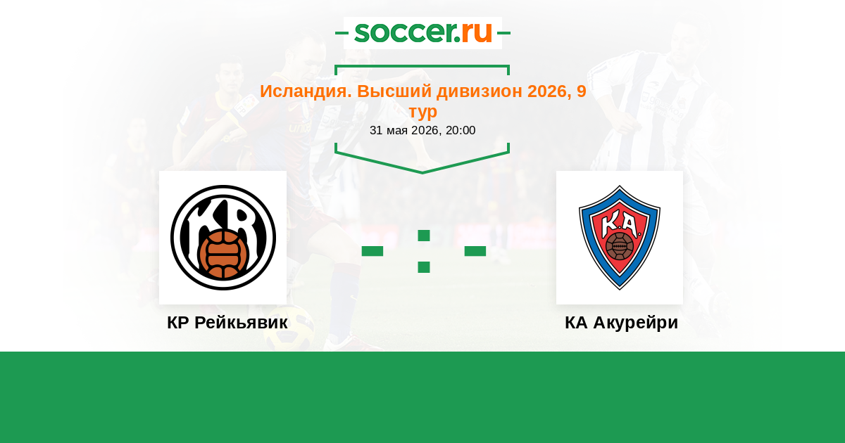 Исландия. Высший дивизион 05.05.2024 КА Акурейри Логотип футбольный клуб КА Акурейри 1:1 Логотип футбольный клуб КР Рейкьявик КР Рейкьявик