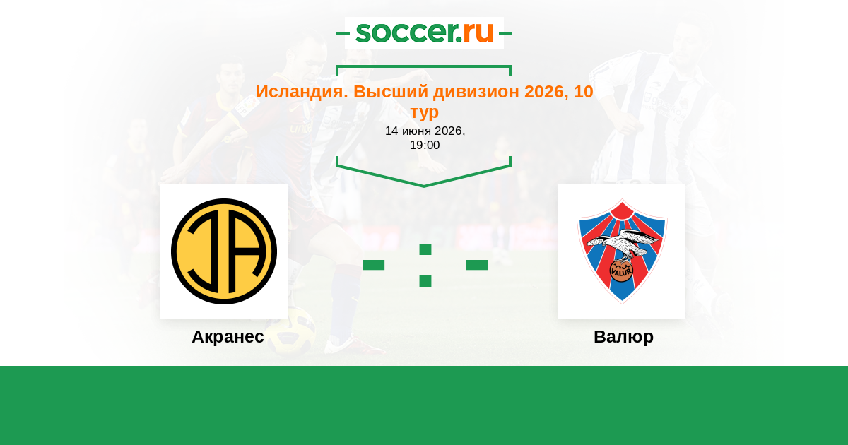 Исландия. Высший дивизион 30.04.2021 Валюр Логотип футбольный клуб Валюр (Рейкьявик) 2:0 Логотип Акранес Акранес