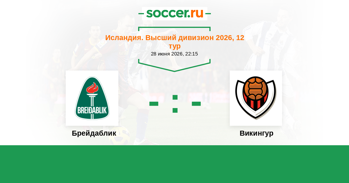 Исландия. Высший дивизион 22.06.2014 Викингур Логотип футбольный клуб Викингур (Рейкьявик) 1:0 Логотип футбольный клуб Брейдаблик (Коупавогюр) Брейдаблик