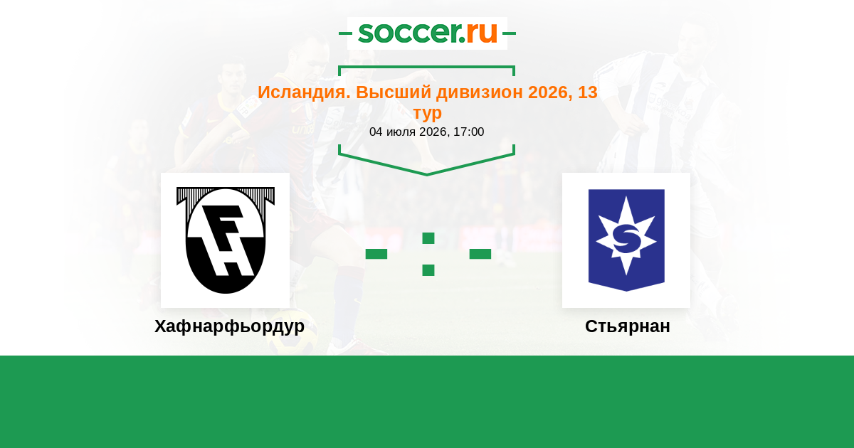 Исландия. Высший дивизион 01.09.2024 Хафнарфьордур Логотип футбольный клуб Хафнарфьордур 0:3 Логотип футбольный клуб Стьярнан (Гардабайр) Стьярнан