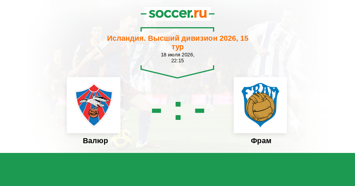 Исландия. Высший дивизион 05.07.2010 Фрам Логотип футбольный клуб Фрам (Рейкьявик) 2:2 Логотип футбольный клуб Валюр (Рейкьявик) Валюр
