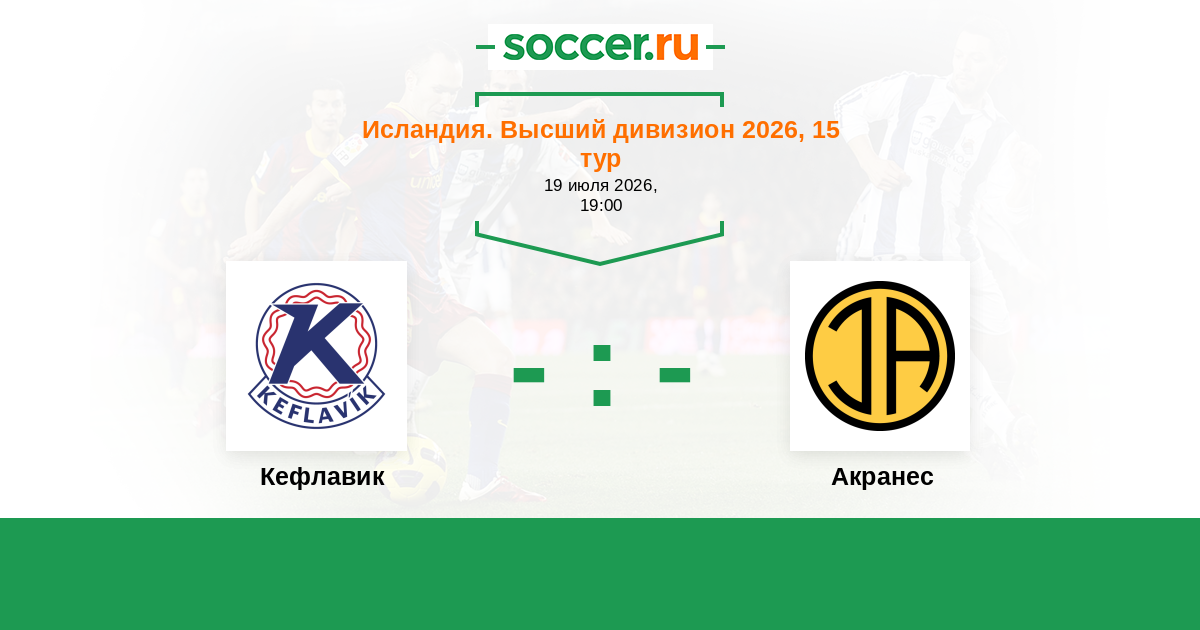 Исландия. Высший дивизион 25.09.2021 Кефлавик Логотип футбольный клуб Кефлавик (Рейкьянесбар) 2:3 Логотип Акранес Акранес