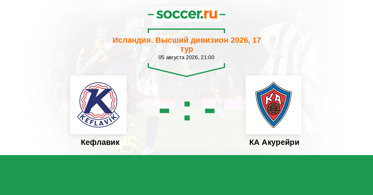 Исландия. Высший дивизион 17.05.2021 Кефлавик Логотип футбольный клуб Кефлавик (Рейкьянесбар) 1:4 Логотип футбольный клуб КА Акурейри КА Акурейри