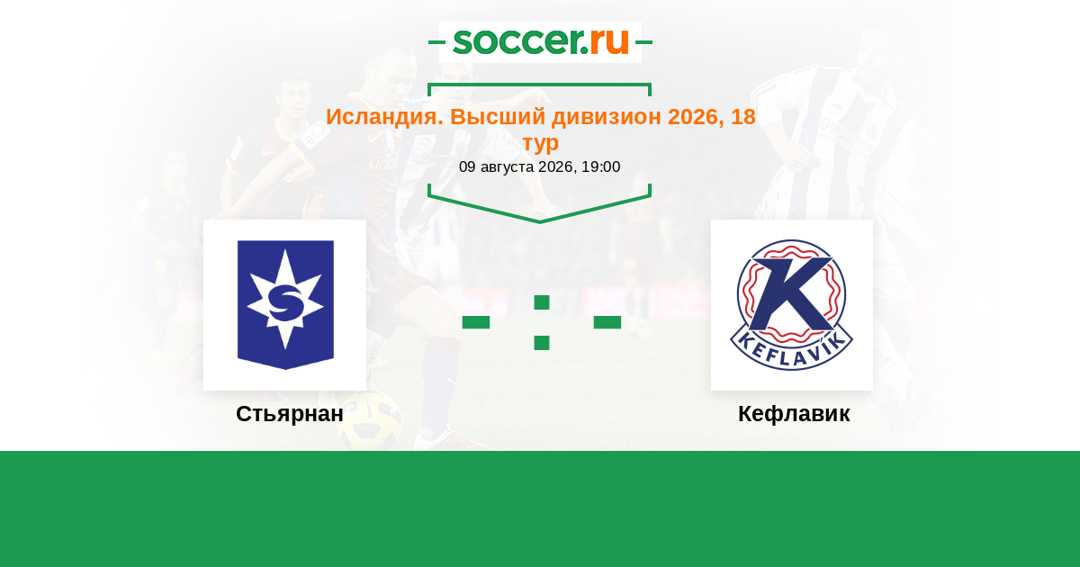 Исландия. Высший дивизион 07.07.2018 Кефлавик Логотип футбольный клуб Кефлавик (Рейкьянесбар) 0:2 Логотип футбольный клуб Стьярнан (Гардабайр) Стьярнан