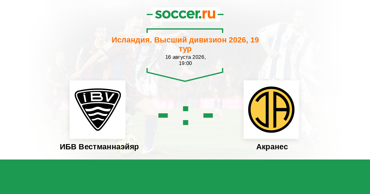 Исландия. Высший дивизион 24.08.2019 Акранес Логотип Акранес 2:1 Логотип футбольный клуб ИБВ Вестманнаэйяр ИБВ Вестманнаэйяр