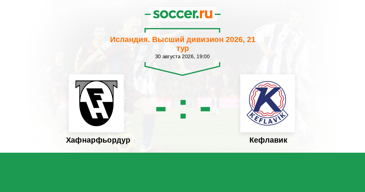 Исландия. Высший дивизион 21.08.2021 Кефлавик Логотип футбольный клуб Кефлавик (Рейкьянесбар) 0:5 Логотип футбольный клуб Хафнарфьордур Хафнарфьордур