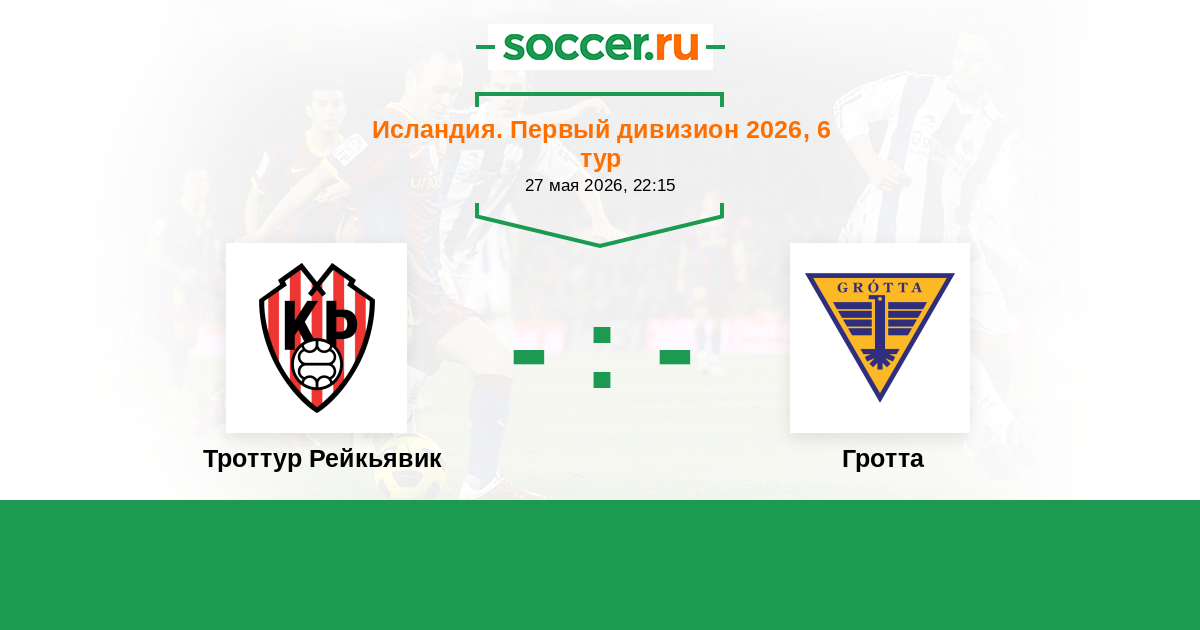 Исландия. Первый дивизион 07.06.2024 Гротта Логотип футбольный клуб Гротта (Сельтьяднарнес) 1:1 Логотип футбольный клуб Троттур Рейкьявик Троттур Рейкьявик