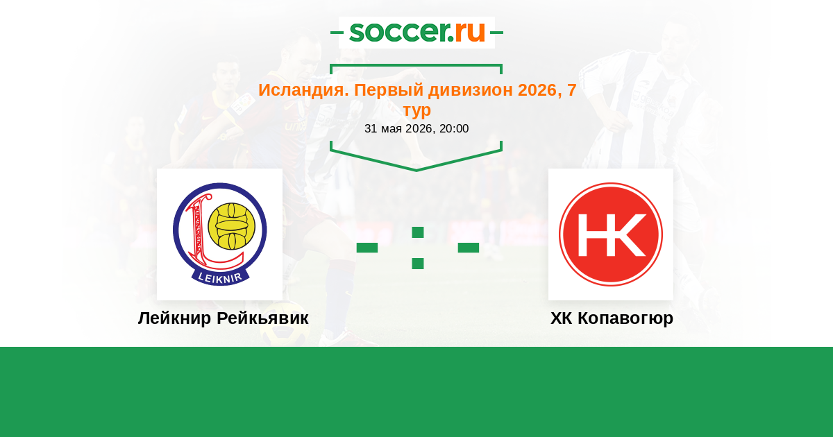 Исландия. Первый дивизион 31.05.2018 ХК Копавогюр Логотип футбольный клуб ХК Копавогюр (Копавогур) 2:1 Логотип футбольный клуб Лейкнир Рейкьявик Лейкнир Рейкьявик