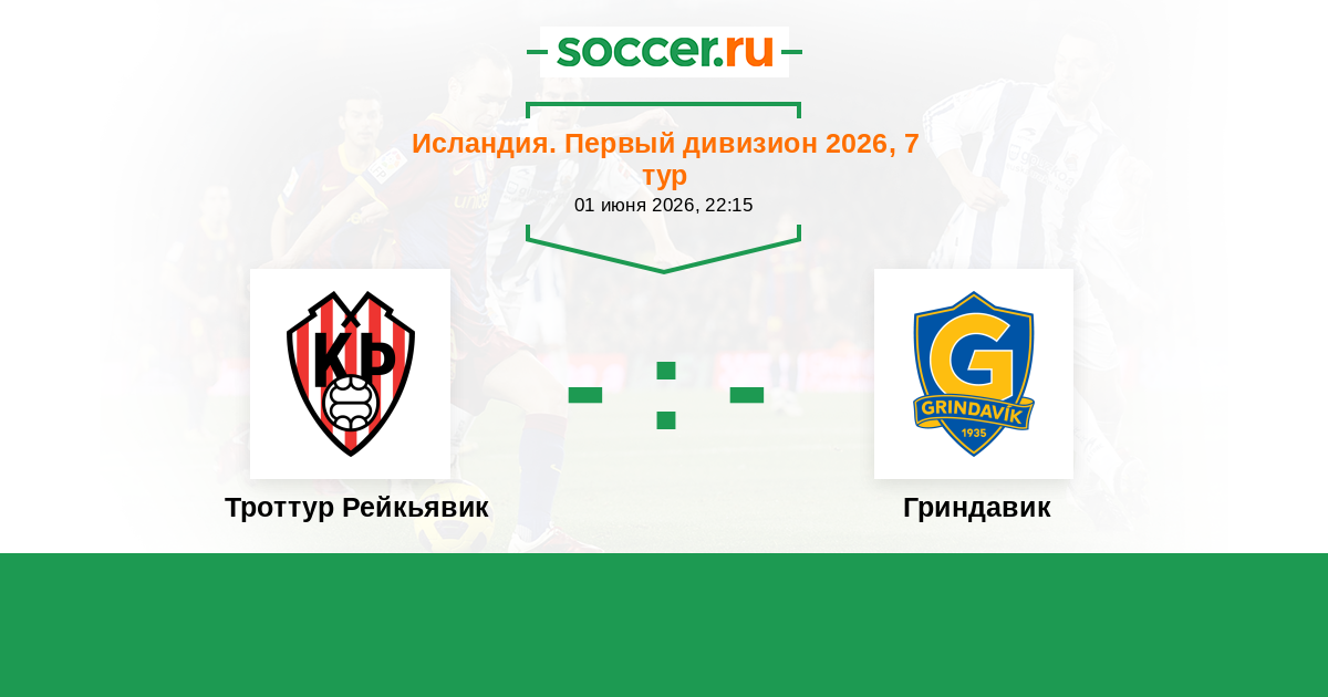 Исландия. Первый дивизион 30.06.2024 Троттур Рейкьявик Логотип футбольный клуб Троттур Рейкьявик 1:0 Логотип футбольный клуб Гриндавик Гриндавик