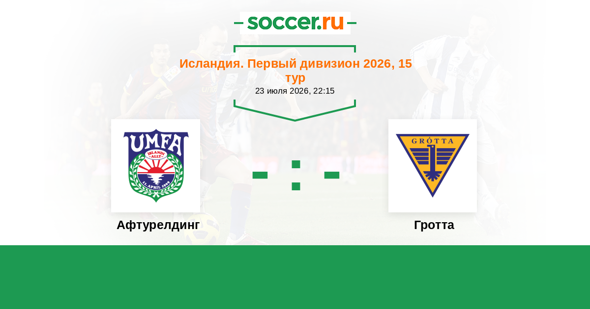 Исландия. Первый дивизион 18.07.2024 Гротта Логотип футбольный клуб Гротта (Сельтьяднарнес) 1:4 Логотип футбольный клуб Афтурелдинг (Мосфедльсбайр) Афтурелдинг