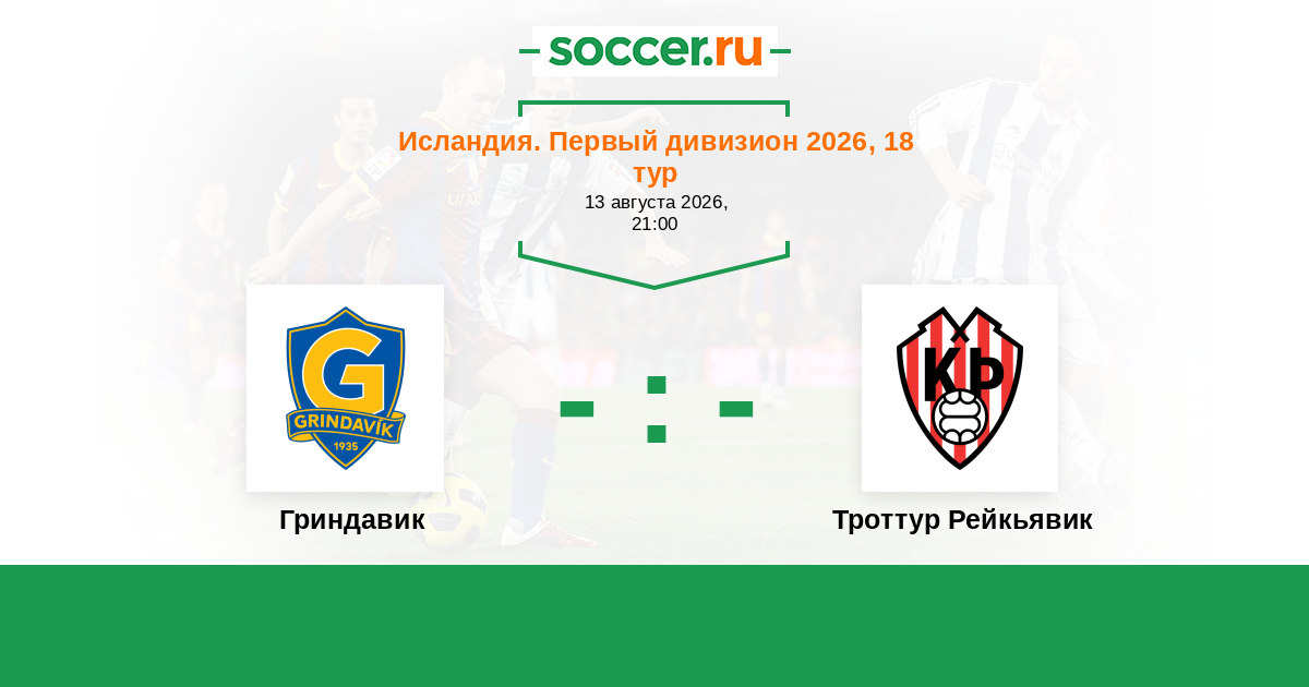 Исландия. Первый дивизион 19.08.2021 Гриндавик Логотип футбольный клуб Гриндавик 2:1 Логотип футбольный клуб Троттур Рейкьявик Троттур Рейкьявик