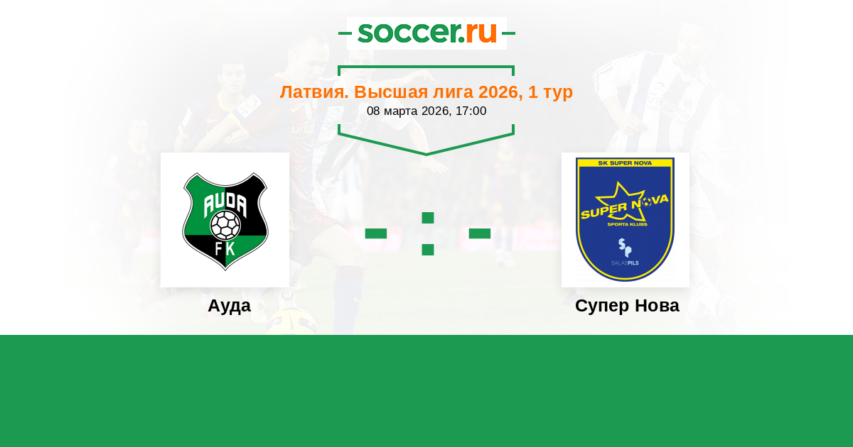 Латвия. Высшая лига 16.03.2025 Ауда Логотип Ауда (Кекава) 1:0 Логотип футбольный клуб Супер Нова (Рига) Супер Нова