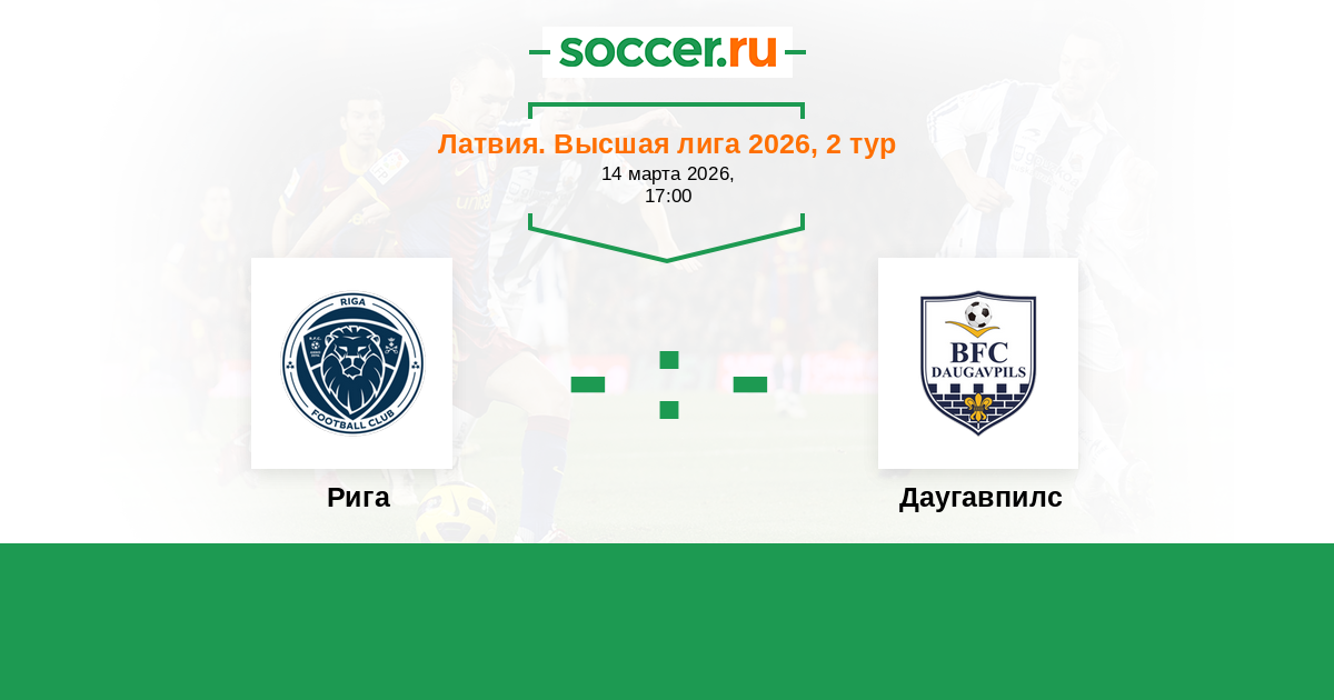 Латвия. Высшая лига 10.04.2022 Даугавпилс Логотип Даугавпилс 0:0 Логотип футбольный клуб Рига Рига