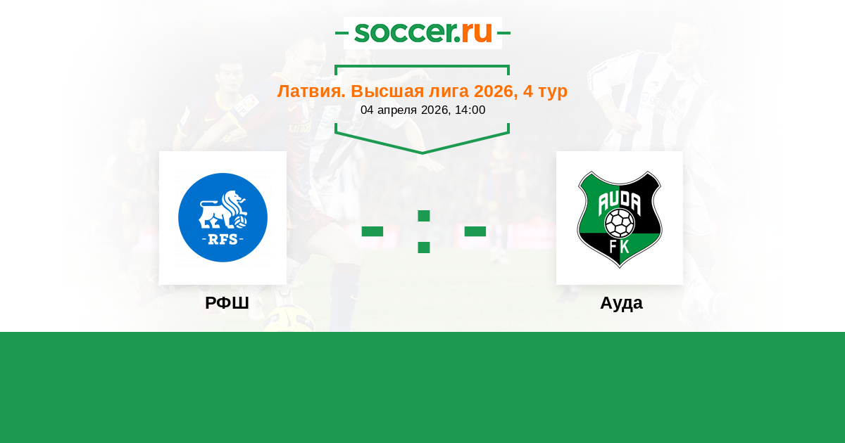 Латвия. Высшая лига 06.04.2022 РФШ Логотип футбольный клуб РФШ (Рига) 0:0 Логотип Ауда (Кекава) Ауда
