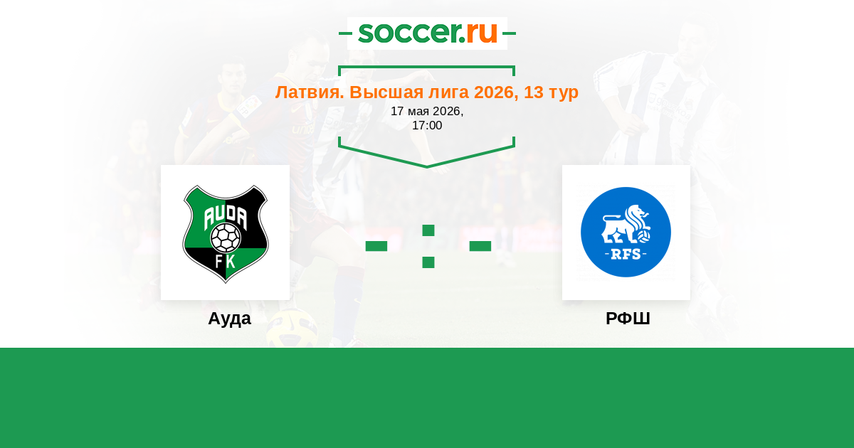 Латвия. Высшая лига 01.05.2024 РФШ Логотип футбольный клуб РФШ (Рига) 2:1 Логотип Ауда (Кекава) Ауда