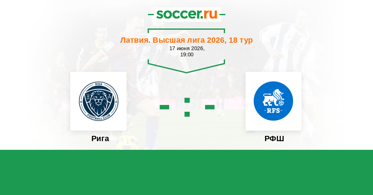 Латвия. Высшая лига 18.06.2025 Рига Логотип футбольный клуб Рига 3:1 Логотип футбольный клуб РФШ (Рига) РФШ
