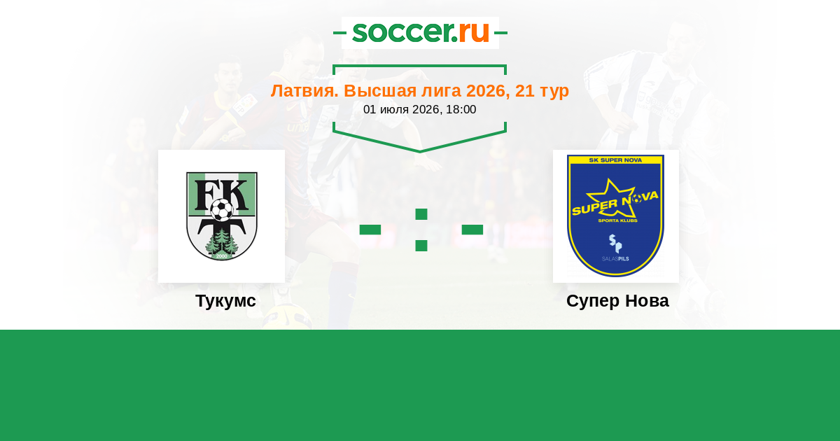 Латвия. Высшая лига 06.07.2025 Супер Нова Логотип футбольный клуб Супер Нова (Рига) 1:0 Логотип футбольный клуб Тукумс Тукумс