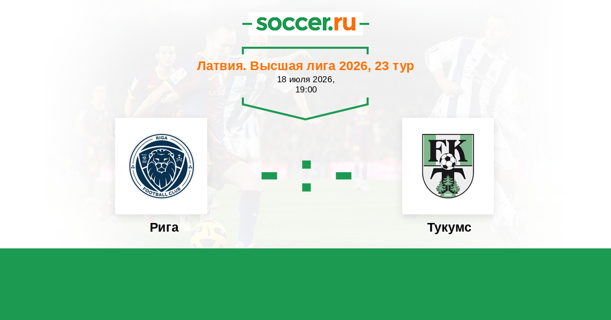 Латвия. Высшая лига 23.07.2023 Тукумс Логотип футбольный клуб Тукумс 0:6 Логотип футбольный клуб Рига Рига