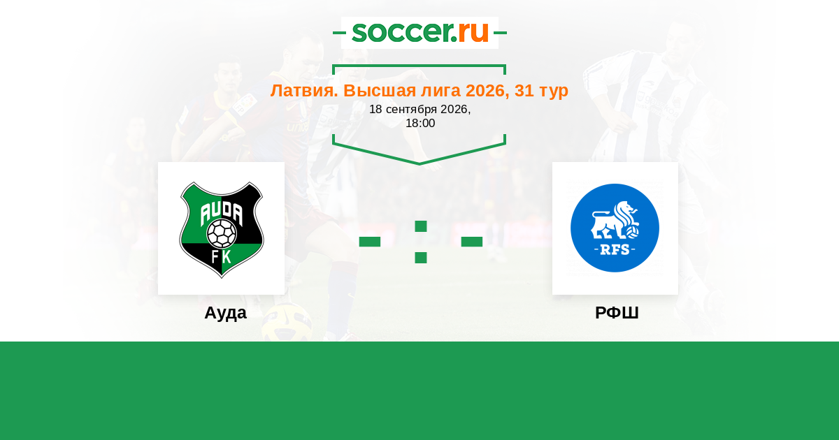 Латвия. Первая лига 24.09.2011 Ауда Логотип Ауда (Кекава) 1:1 Логотип футбольный клуб РФШ (Рига) РФШ