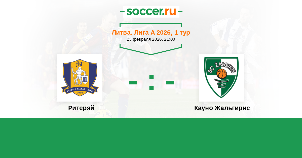 Литва. Лига А 20.03.2021 Кауно Жальгирис Логотип футбольный клуб Кауно Жальгирис (Каунас) 2:1 Логотип футбольный клуб Ритеряй (Тракай) Ритеряй