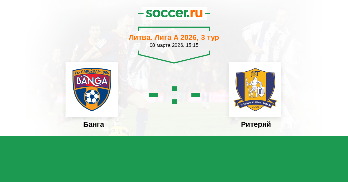 Литва. Лига А 05.04.2023 Ритеряй Логотип футбольный клуб Ритеряй (Тракай) 0:0 Логотип футбольный клуб Банга (Гаргждай) Банга