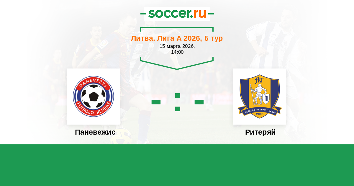 Литва. Лига А 12.03.2023 Ритеряй Логотип футбольный клуб Ритеряй (Тракай) 0:4 Логотип футбольный клуб Паневежис Паневежис