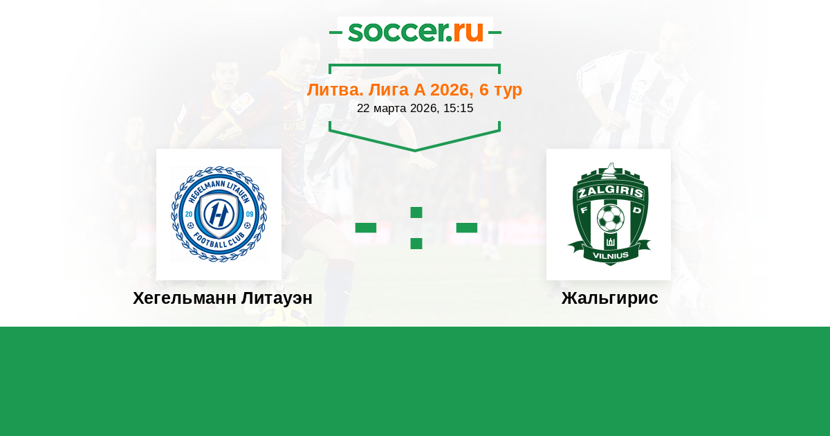 Литва. Лига А 20.03.2021 Жальгирис Логотип футбольный клуб Жальгирис (Вильнюс) 2:0 Логотип футбольный клуб Хегельманн Литауэн (Каунас) Хегельманн Литауэн