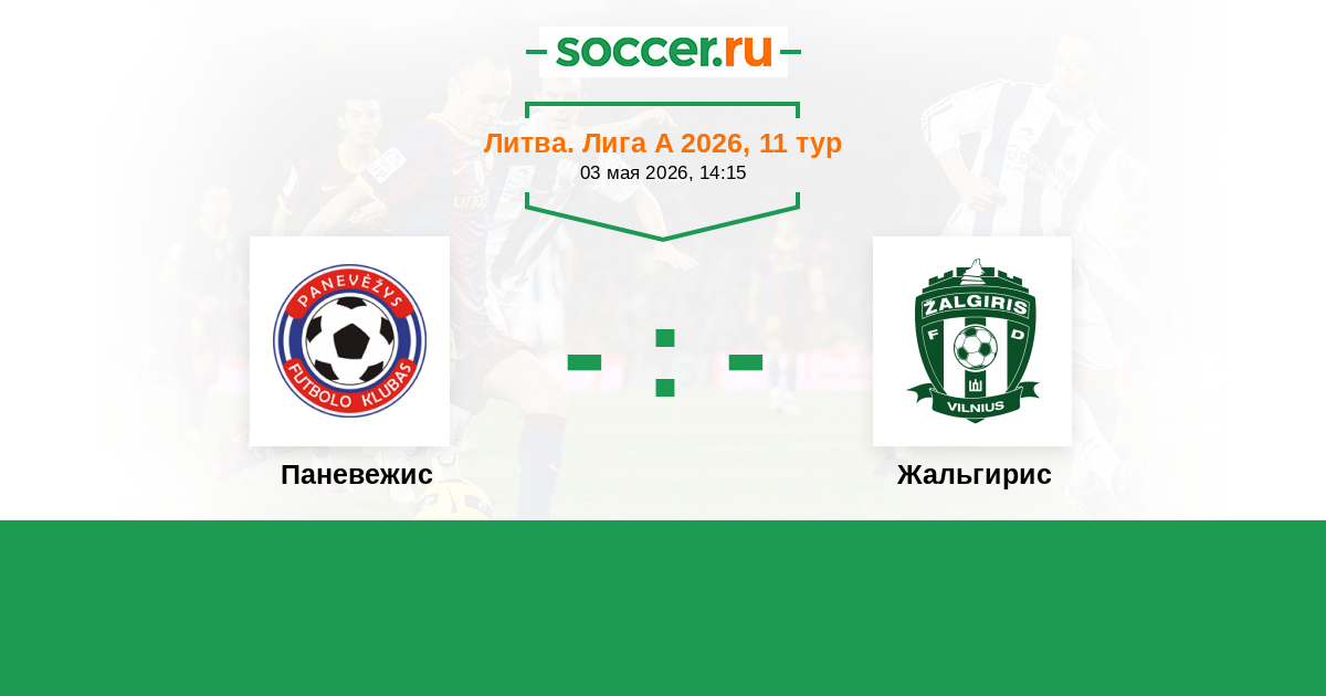 Литва. Лига А 11.05.2021 Паневежис Логотип футбольный клуб Паневежис 0:2 Логотип футбольный клуб Жальгирис (Вильнюс) Жальгирис