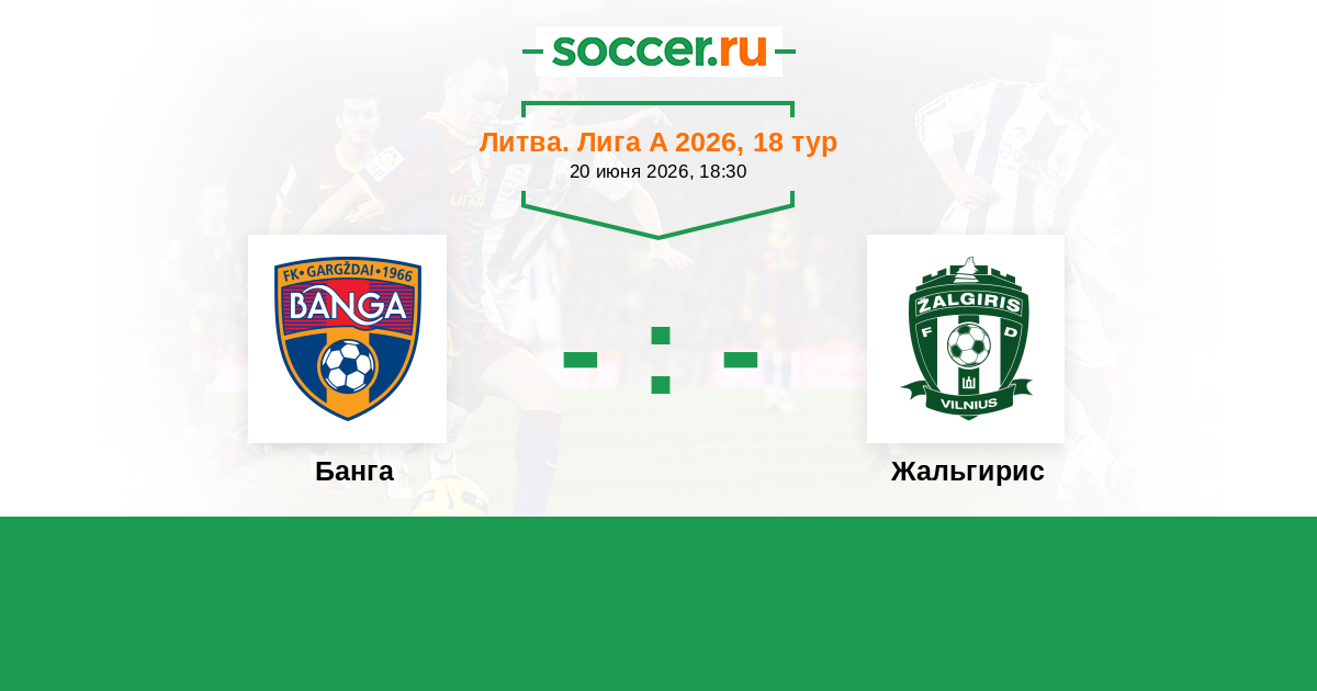 Литва. Лига А 18.06.2014 Жальгирис Логотип футбольный клуб Жальгирис (Вильнюс) 1:0 Логотип футбольный клуб Банга (Гаргждай) Банга