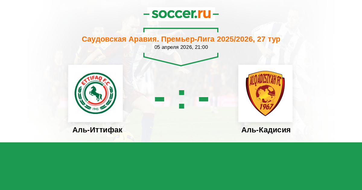 Саудовская Аравия. Премьер-Лига 05.04.2025 Аль-Кадисия Логотип футбольный клуб Аль-Кадисия (Эль-Хубар) 1:1 Логотип футбольный клуб Аль-Иттифак (Даммам) Аль-Иттифак