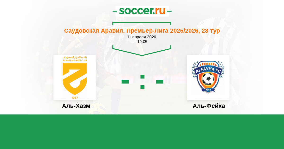 Саудовская Аравия. Премьер-Лига 25.12.2025 Аль-Фейха Логотип футбольный клуб Аль-Фейха (Аль-Маджмаа) 0:0 Логотип футбольный клуб Аль-Хазм (Эр-Расс) Аль-Хазм