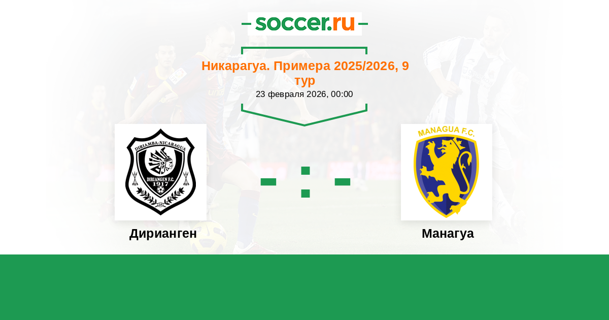 Никарагуа. Примера 18.02.2021 Манагуа Логотип футбольный клуб Манагуа 1:3 Логотип футбольный клуб Дирианген (Дириамба) Дирианген