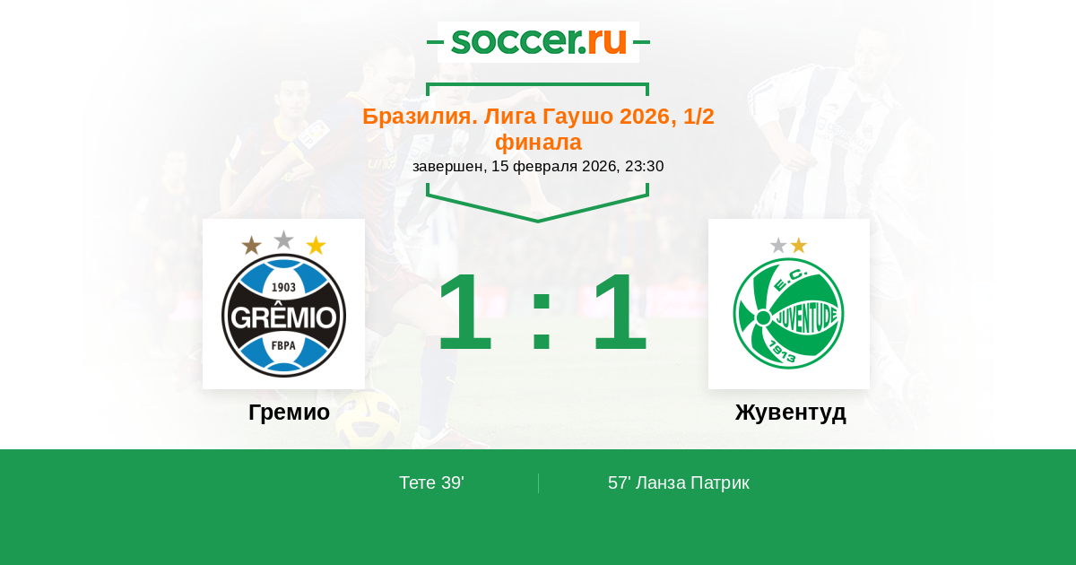 Протокол матча Гремио против Жувентуд