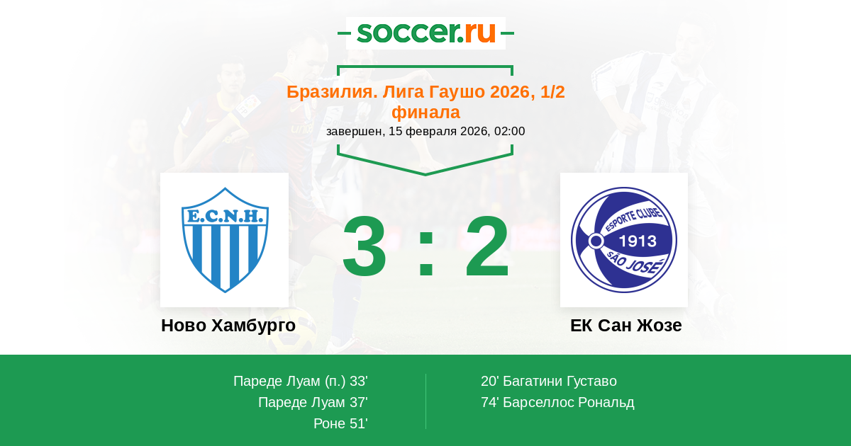 Протокол матча Ново Хамбурго против ЕК Сан Жозе