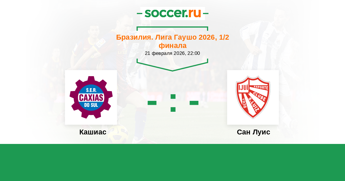 Бразилия. Лига Гаушо 17.02.2026 Сан Луис Логотип футбольный клуб Сан Луис 1:2 Логотип футбольный клуб Кашиас (Кашиас-ду-Сул) Кашиас
