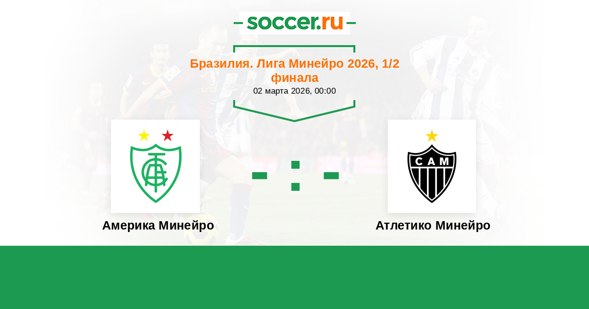 Бразилия. Лига Минейро 22.01.2026 Америка Минейро Логотип футбольный клуб Америка Минейро (Белу-Оризонти) 1:1 Логотип футбольный клуб Атлетико Минейро (Белу-Оризонти) Атлетико Минейро