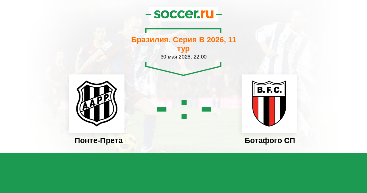 Бразилия. Серия В 20.06.2024 Ботафого СП Логотип футбольный клуб Ботафого СП (Рибейран-Прету) 2:0 Логотип футбольный клуб Понте-Прета (Кампинас) Понте-Прета