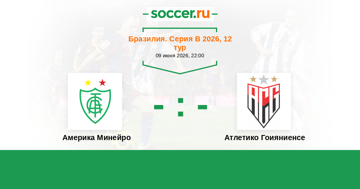 Бразилия. Серия В 20.06.2015 Америка Минейро Логотип футбольный клуб Америка Минейро (Белу-Оризонти) 1:0 Логотип футбольный клуб Атлетико Гоияниенсе (Гояния) Атлетико Гоияниенсе
