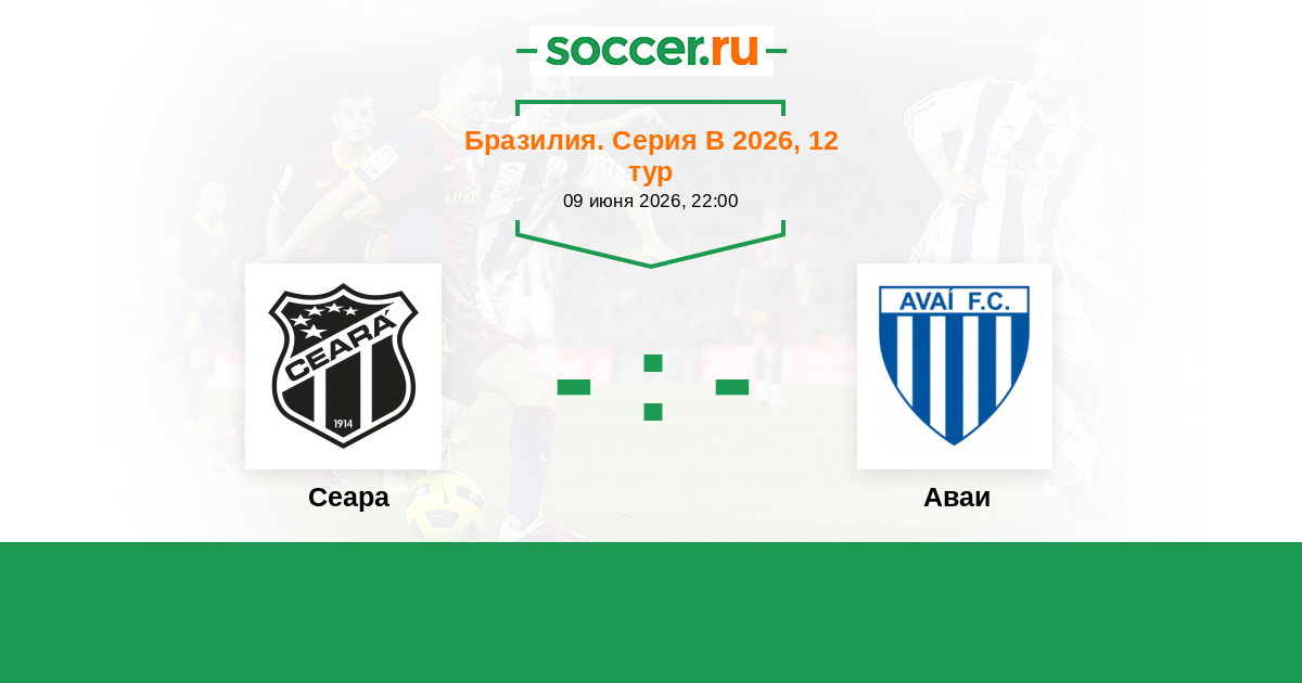 Бразилия. Серия В 20.09.2014 Сеара Логотип футбольный клуб Сеара (Форталеза) 2:2 Логотип футбольный клуб Аваи (Флорианополис) Аваи