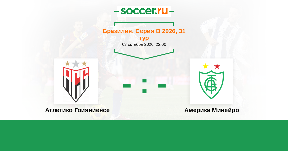 Бразилия. Серия В 03.10.2014 Америка Минейро Логотип футбольный клуб Америка Минейро (Белу-Оризонти) 1:1 Логотип футбольный клуб Атлетико Гоияниенсе (Гояния) Атлетико Гоияниенсе