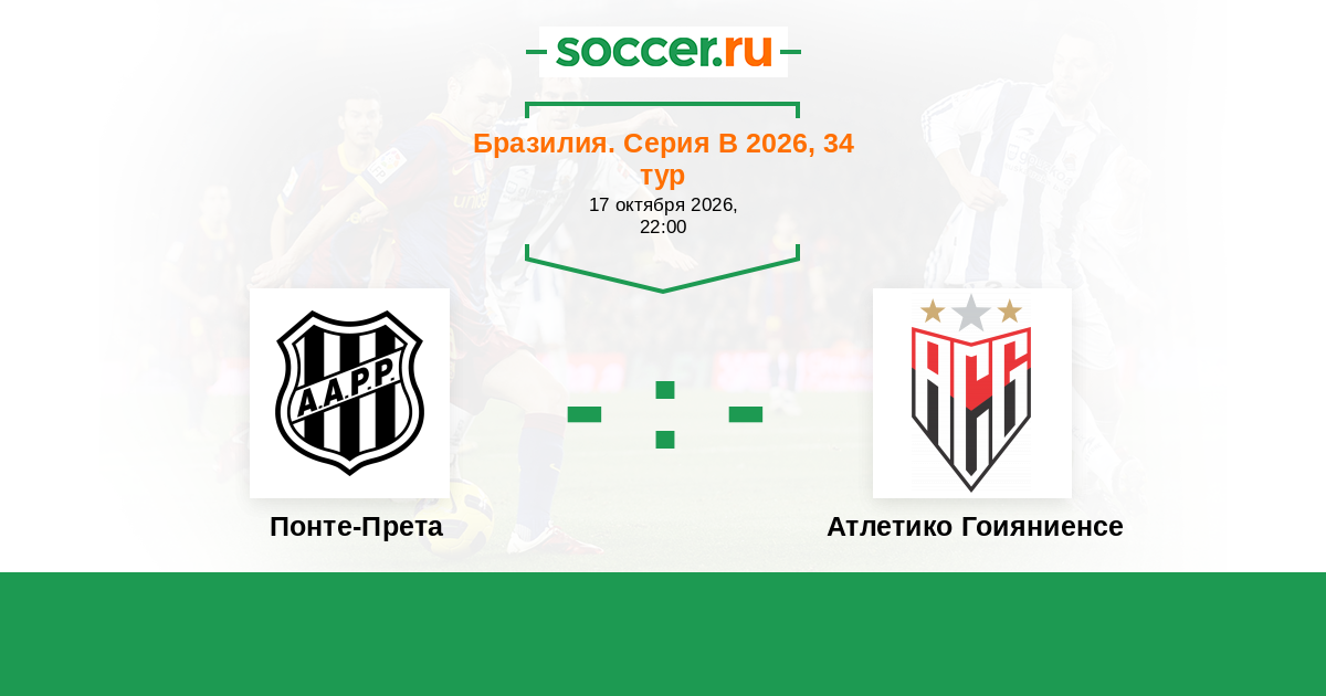 Бразилия. Серия В 15.10.2023 Понте-Прета Логотип футбольный клуб Понте-Прета (Кампинас) 0:2 Логотип футбольный клуб Атлетико Гоияниенсе (Гояния) Атлетико Гоияниенсе