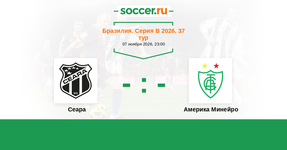 Бразилия. Серия В 16.09.2017 Сеара Логотип футбольный клуб Сеара (Форталеза) 1:1 Логотип футбольный клуб Америка Минейро (Белу-Оризонти) Америка Минейро