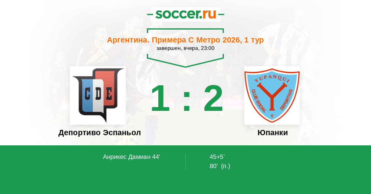 Протокол матча Депортиво Эспаньол против Юпанки