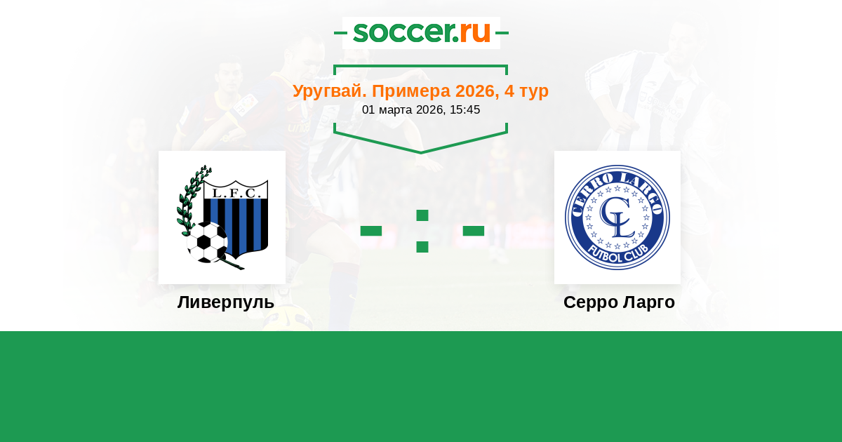 Уругвай. Примера A 02.04.2023 Серро Ларго Логотип футбольный клуб Серро Ларго (Мело) 1:0 Логотип футбольный клуб Ливерпуль (Монтевидео) Ливерпуль