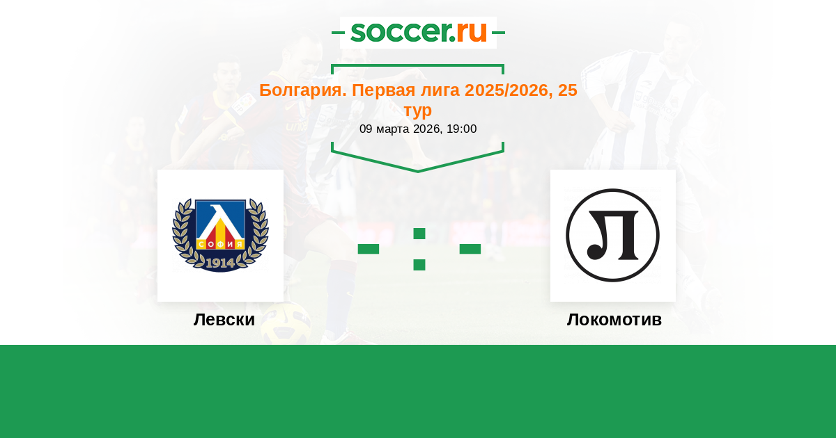 Болгария. Первая лига 23.07.2017 Локомотив Логотип футбольный клуб Локомотив (Пловдив) 0:0 Логотип футбольный клуб Левски (София) Левски