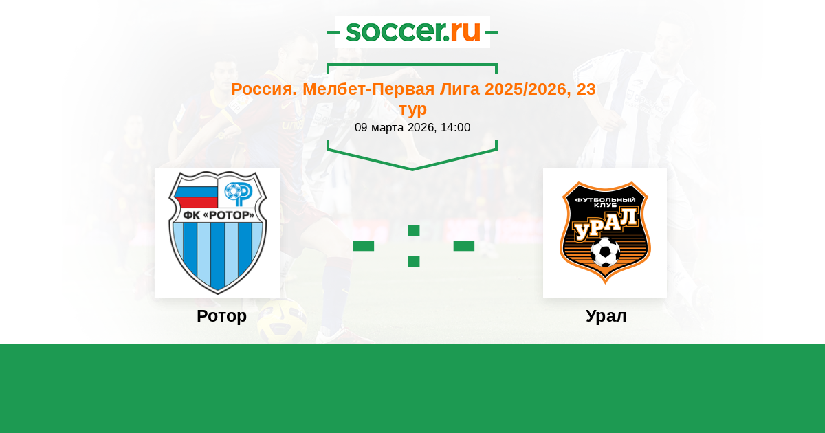 Россия. Первая лига 03.03.2025 Ротор Логотип футбольный клуб Ротор (Волгоград) 0:0 Логотип футбольный клуб Урал (Екатеринбург) Урал