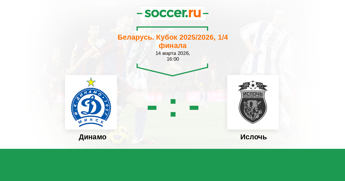 Беларусь. Высшая лига 07.04.2018 Динамо Логотип футбольный клуб Динамо (Минск) 0:0 Логотип футбольный клуб Ислочь (Минск) Ислочь
