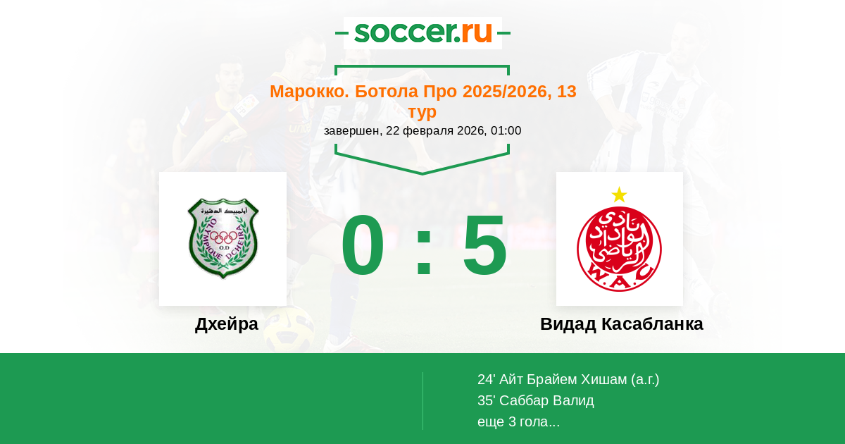 24' (0:1) Автогол Айт Брайем Хишам (15)